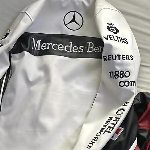 Level up your style with this Mercedes-Benz racing leather jacket, crafted for speed lovers and fashion-forward bikers. Made from premium leather, featuring iconic Motorsport logos, and designed for a perfect fit. A must-have for F1 fans, bikers, and streetwear lovers. Limited stock – order now!